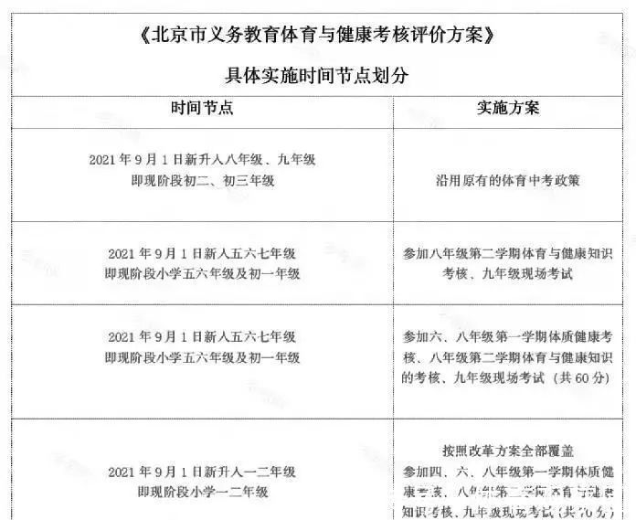 具体分为4个时间节点: 2021年9月1日新升入八年级、九年级,即现在的初二、初三年级同学,仍沿用原有的体育中考政策,但在日常教育教学中,贯彻此次改革的精神。